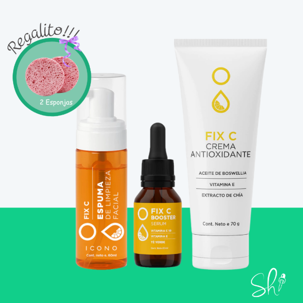Paso 2: Serum Fix C, es un concentrado de vitamina C que combate los radicales libres, ilumina la piel y la protege frente a los agentes externos. Su fórmula está potenciada con vitamina e y té verde que le confieren cualidades antioxidantes y rejuvenecedoras.